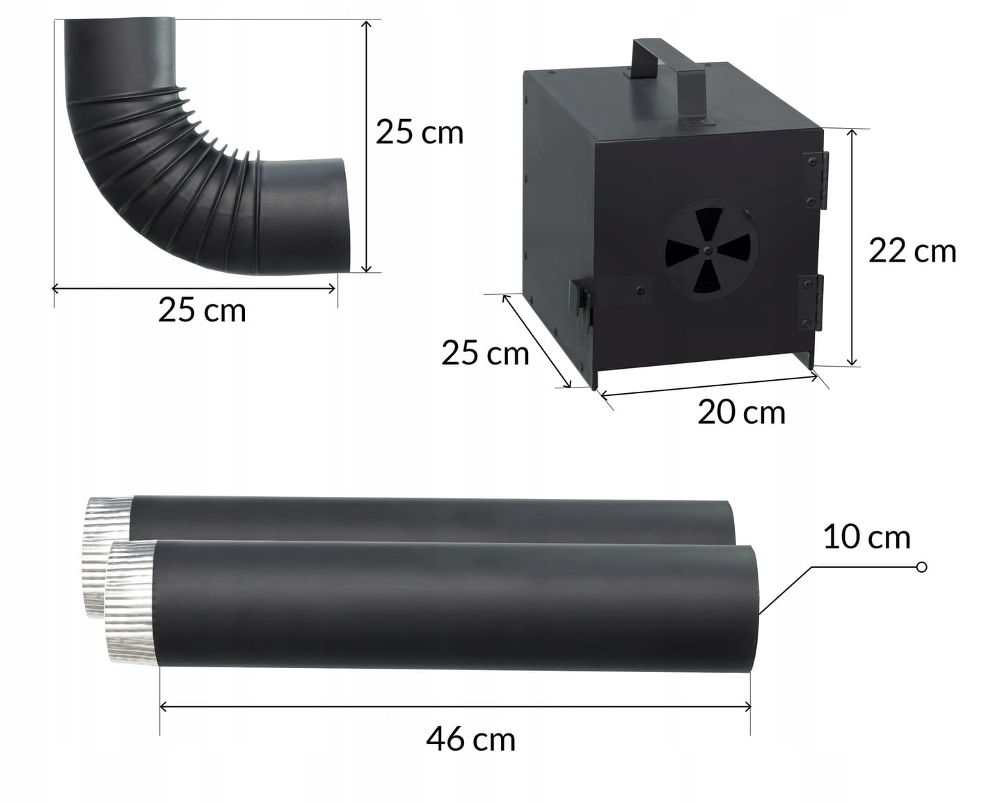 - Rura dymowa: 46 cm długości, Ø 10 cm (2 sztuki)