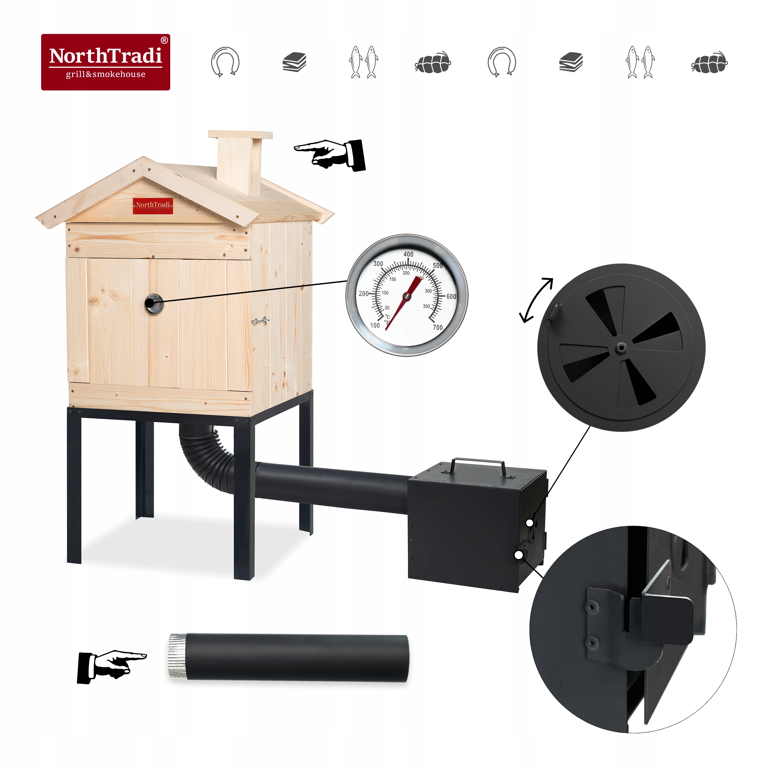 - NorthTradi: dwustopniowy dyfuzor – równomierne rozchodzenie się dymu, brak przypaleń, powtarzalny efekt wędzenia.